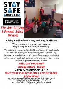 We untangle the confusion, build confidence through tools for decision making under pressure, resilience training [letting the words bounce off], identifying danger early and getting away, basic self defence skills and safety tips for the other dangers children might face.